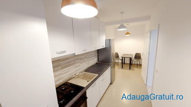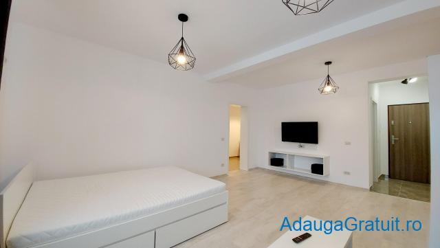 Apartamentul se afla la prima inchiriere, totul nou, complet mobilat si utilat modern, compus din camera spatioasa cu pat matrimonial, hol, baie mare cu vana, bucatarie separata .
