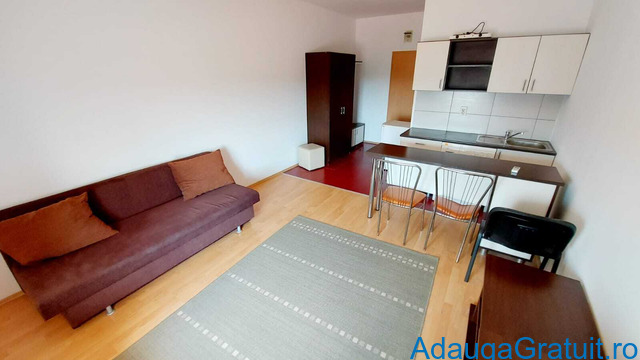 Apartamentul este complet mobilat si utilat, canapea extensibila, frigider, masina de spalat, plita electrica pentru gatit, clima, baie cu cabina de dus .