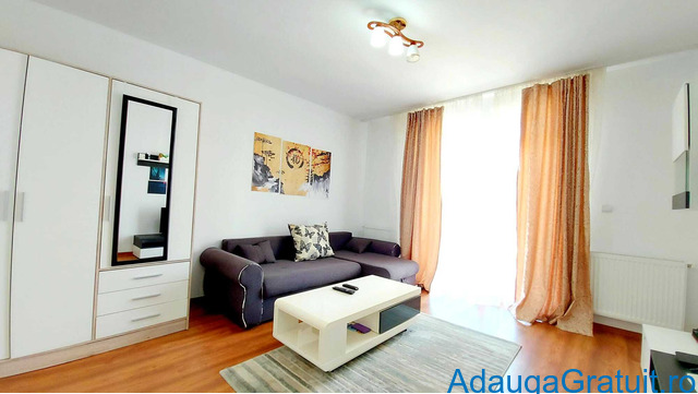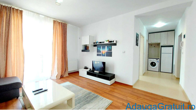 Apartamentul este complet utilat si mobilat modern, compus din camera spatioasa cu iesire pe balcon, hol intrare, bucatarie separata, baie cu vana .
