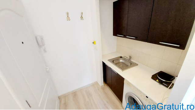 Garsoniera este complet mobilata si utilata moder, compusa din camera, mini bucatarie la intrare, baie cu dus.