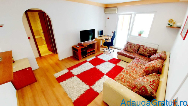 Apartamentul este complet mobilat si utilat, compus din bucatarie spatioasa, living cu iesire in balcon, dormitor cu pat matrimonail si baie cu vana .