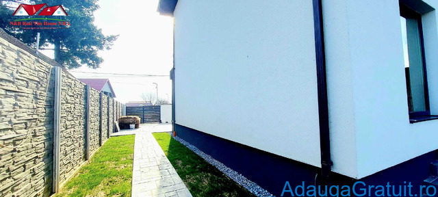 Constructie din caramida poroterm, foarte bine izolata, scarile exterioare si interioare placate cu granit, incalzire in pardoseala de la Purmo, geamuri termopan Rehau de culoare gri antracit, tripan, cu 7 camere, 4 anotimpuri, usi import Germania, balustrada scarilor este din sticla securizata, Clima, gazon, terasa acoperita, placa de beton, tigla cu strat protector , beton amprentat in curte, poarta automatizata cu telecomanda .