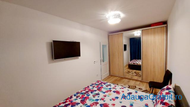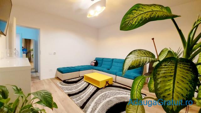 Dispune de mobilier modern si electrocasnice noi, masima de spalat haine, masina de spalat vase, cuptor electric, aragaz, hota, clima, frigider, televizor, video interfon, centrala termica pe gaz cu incalzire in pardoseala, un loc de parcare in curtea privata a blocului ( acces cu telecomanda ), suprafata utila 54 mp .