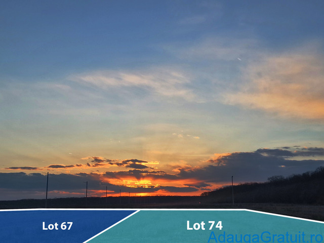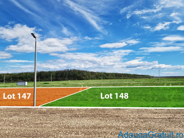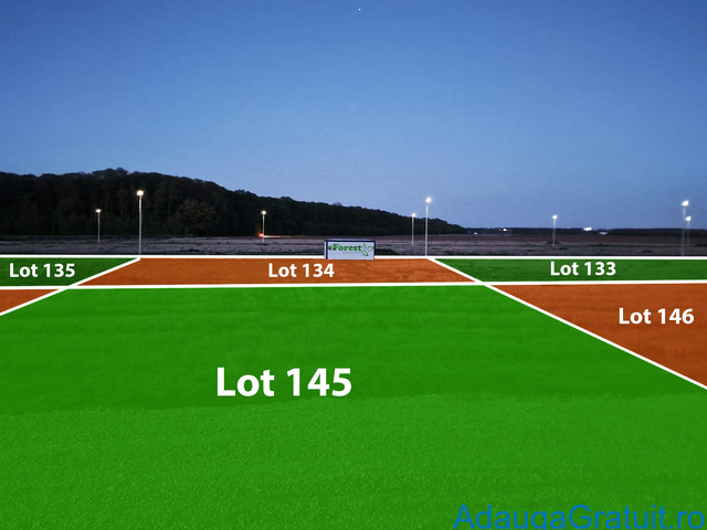 Loturile sunt așezate într-o zonă verde, retrasă, între două masive de pădure, ceea ce înseamnă liniște, aer curat și umbră naturală în zilele de vară. E o zonă care deja prinde contur rezidențial, nu e doar “plan pe hârtie”.